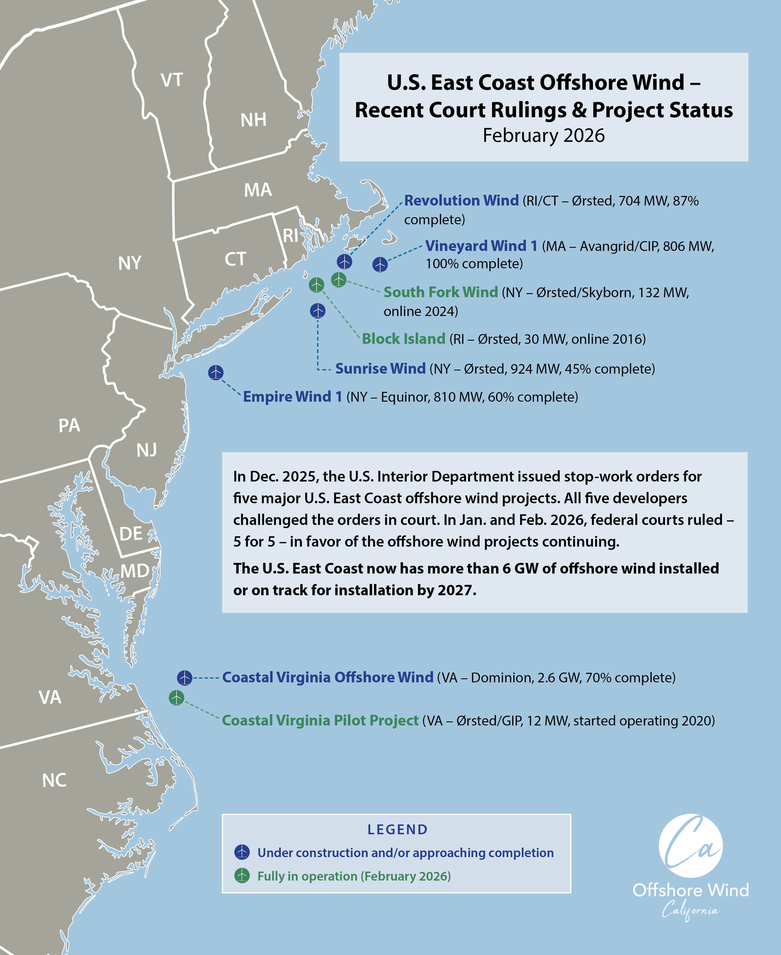 U.S. East Coast Offshore Wind – Recent Court Rulings & Project Status (February 2026)