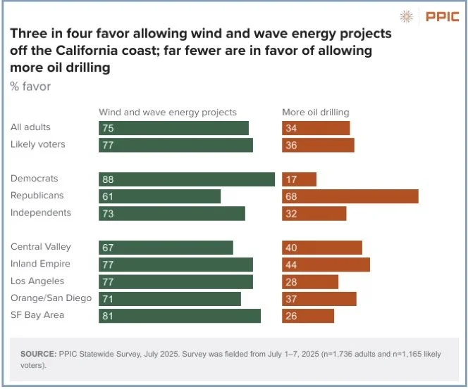New PPIC Survey: 75% of Californians support offshore wind projects off CA coast, July 2025